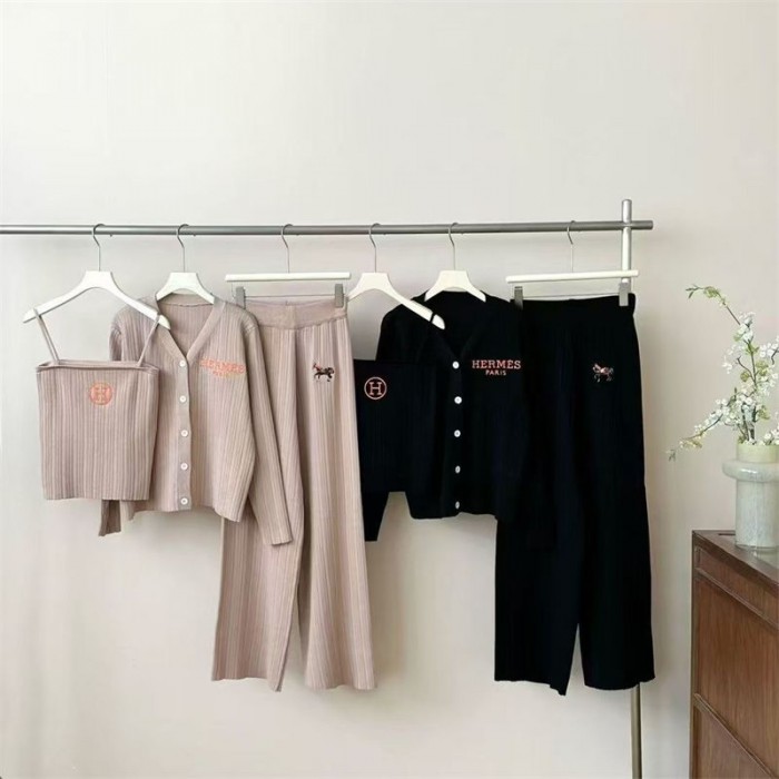 商品名:エルメスレディースカーディガン ニットセット 3点セット Hermes キャミソール ニットセーター ズボン 長袖 カーディガン 秋服 セクシー ワイドパンツ トップス お洒落 可愛い カジュアル シンプル ファッション 通勤 日常 春 秋