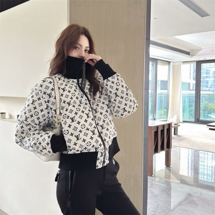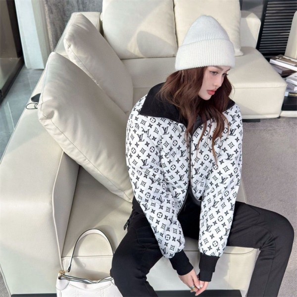 Lv ルイヴィトン ハイブランドレディース ダウンジャケット 厚手 冬 ダウンコート 中綿ジャケット ハイネック 防寒コート ショート丈 アウター 暖かい 可愛い モノグラム柄 棉服コート