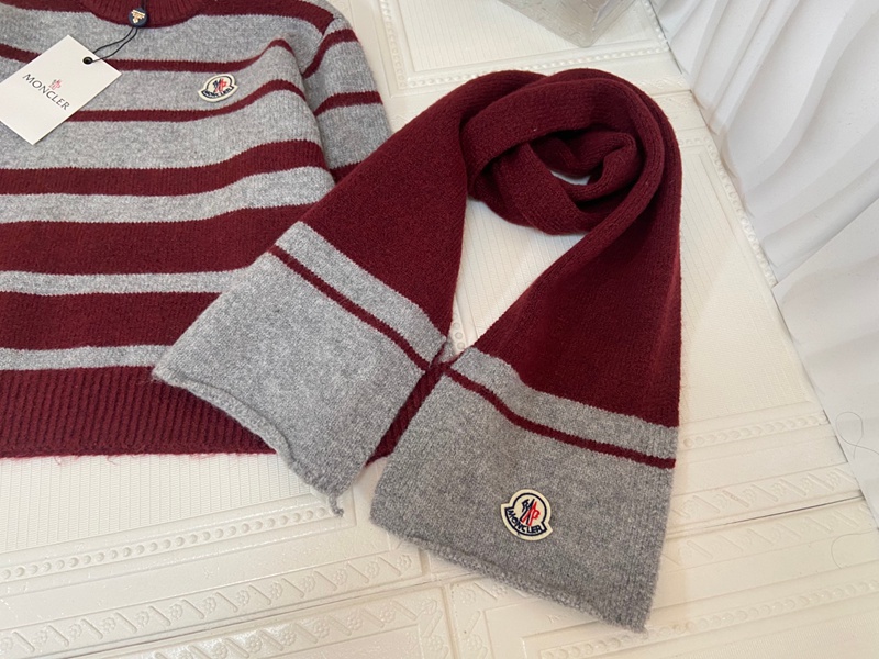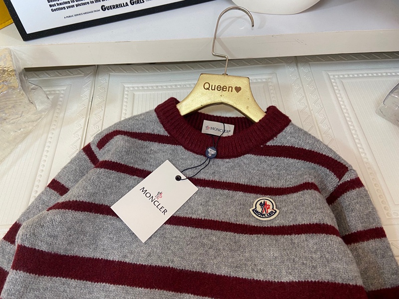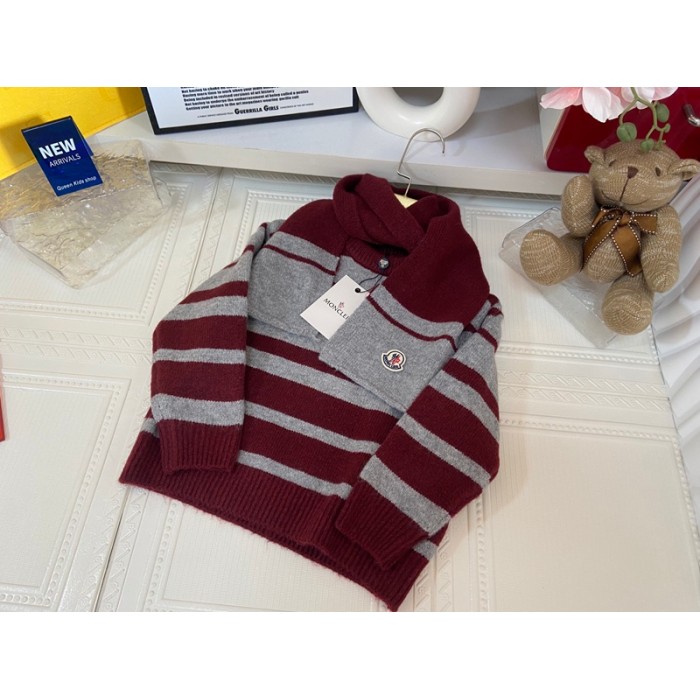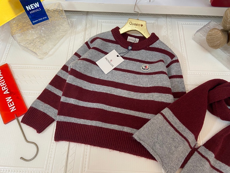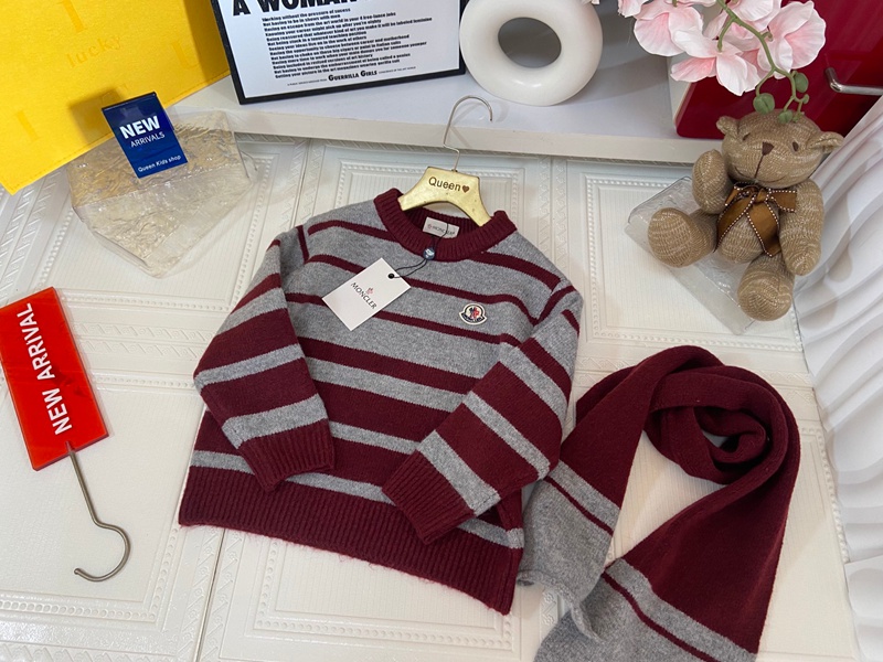 Moncler モンクレールブランド子供服 ニットセーター マフラー 男の子 女の子 クルーネック 長袖 丸首 綿 キッズ 春秋冬 ボーダー柄 シンプル 通学 ボーイズ ガールズ 下着 インナー 防寒 140 130 120 110 150cm