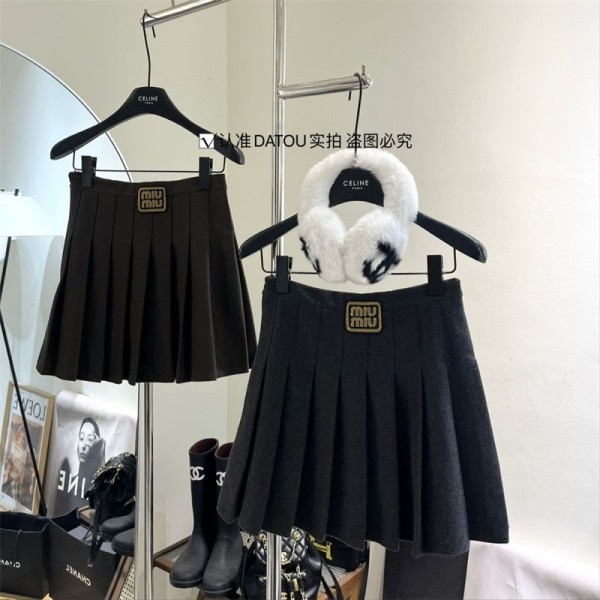 ミュウミュウ MIUMIU ショート丈スカート レディース ブランド プリーツスカート ラシャスカート 厚手 秋 冬 Aラインスカート 黒スカート フェミニン おしゃれ ボトムス かわいい 女子高生 S -XL