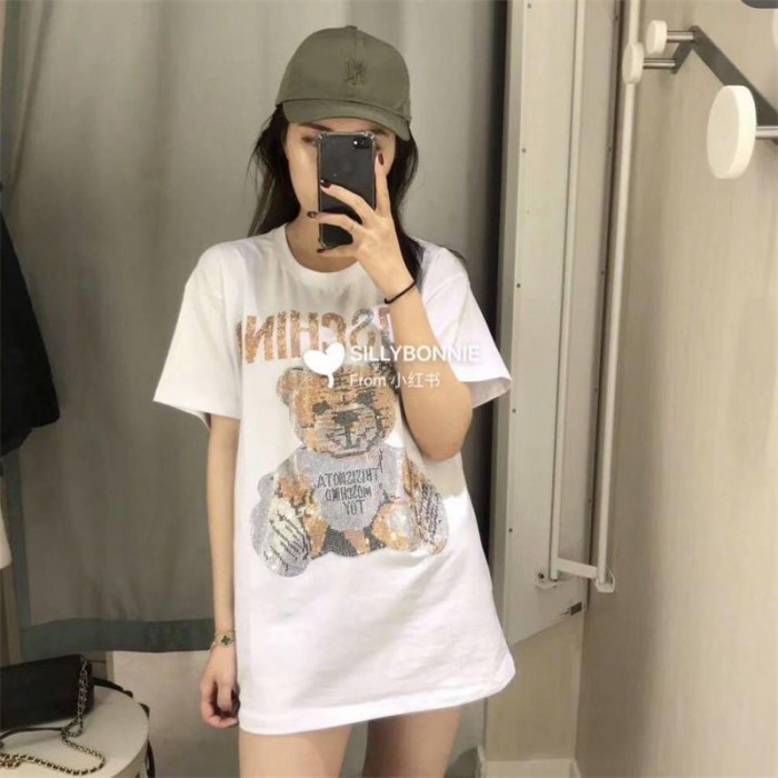 モスキーノtシャツハイブランド MOSCHINO かわいいクマ柄 半袖 tシャツ コットン 肌に優しい tシャツ トップス カップルオススメ