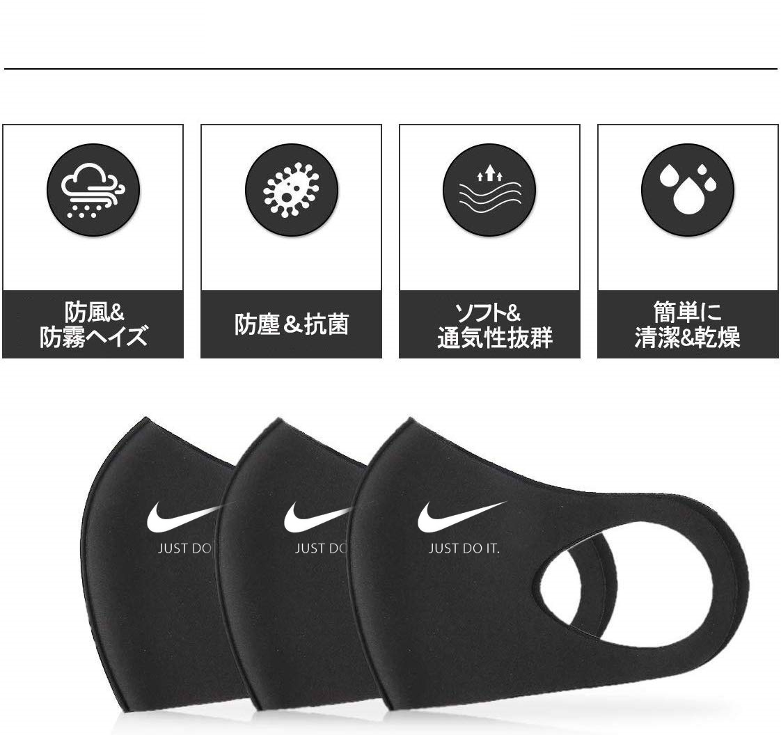 ブランド ナイキ洗えるマスク黒 小顔 繰り返しマスクNike花粉症 飛沫感染予防高品質なマスク耳が痛くならない柔らかいmask 3d立体マスクレディースメンズ大人用子供用