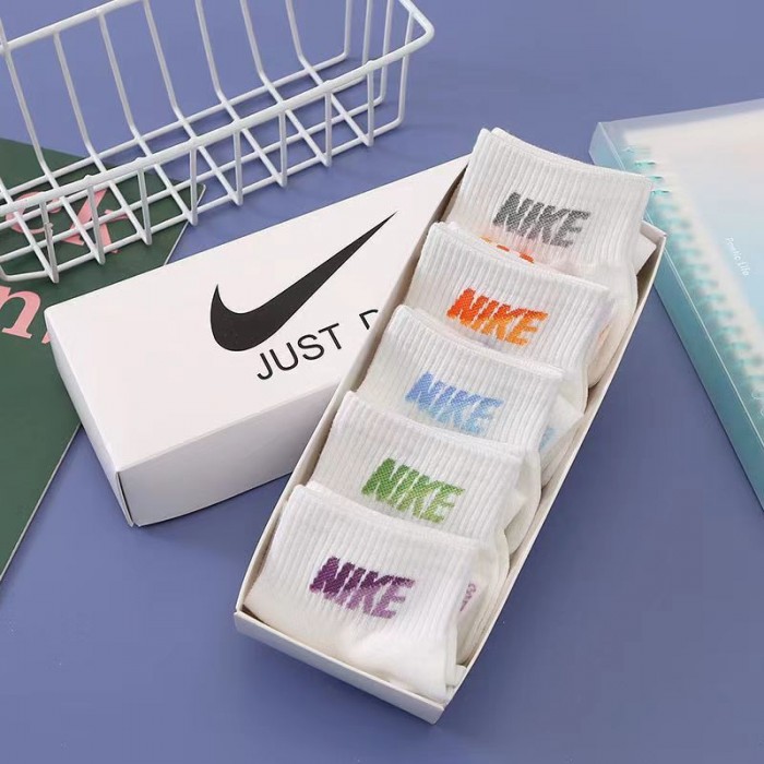 ナイキブランドソックス 靴下 5点セット ホワイト コットン ソフト 通気性よい ミドルソックス レディース 抗菌 防臭 快適 ソックス