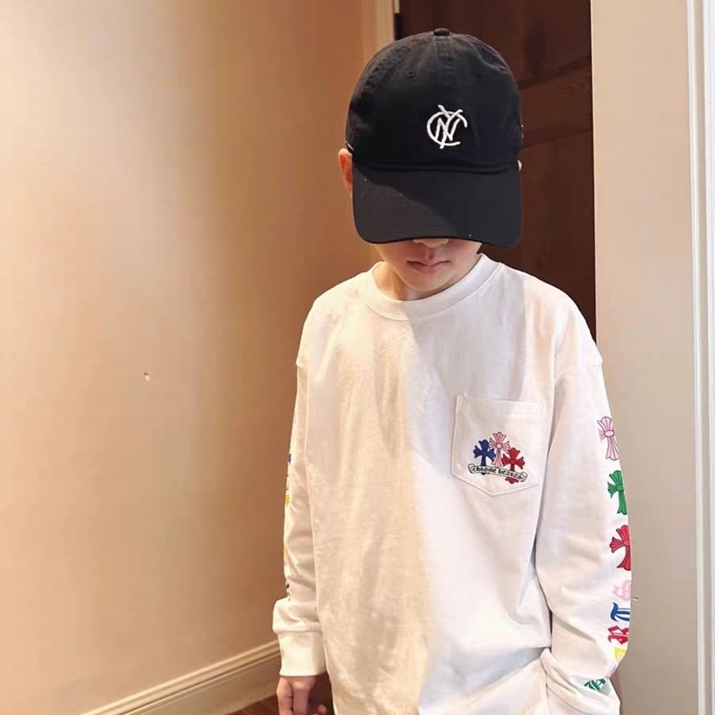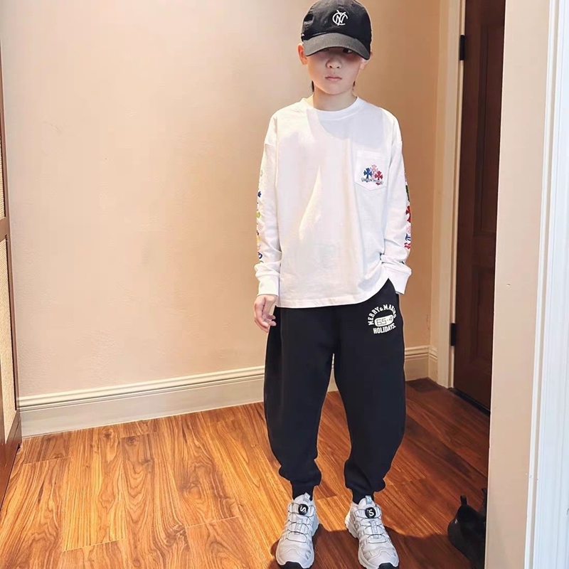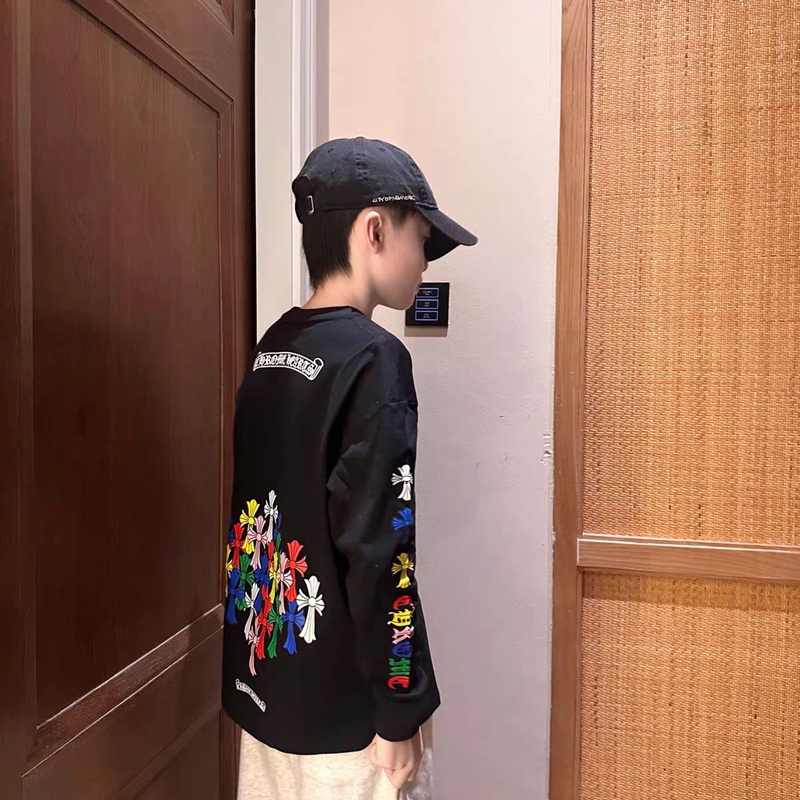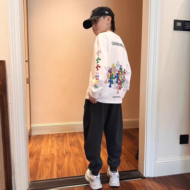 クロムハーツ Chrome Heartsブランドキッズ Tシャツ 長袖 ロンT 子供服 ベビー服 男の子 女の子 ユニ ワイドシルエット 綿100% プリント柄 カットソー 110 120 130 140 150 160 170 cm