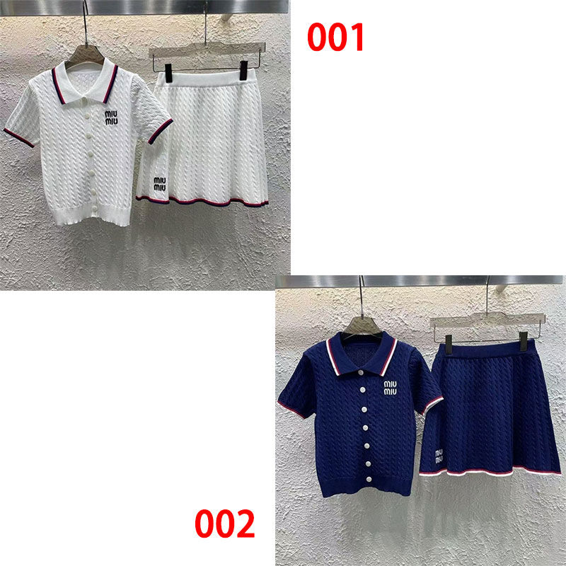 ミュウミュウ MiuMiu ハイブランド女の子 セットアップ 半袖ニット ドレス ニットスカート 上下セット ベビー服 トップス スカート セット 可愛い 気質 S - L