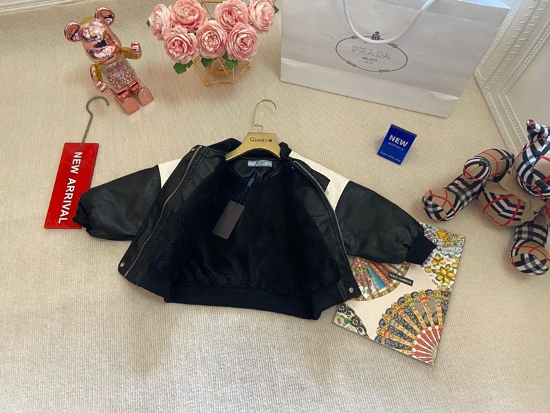ブランドプラダ子供レザージャケット かっこいい PRADA キッズ 革ジャケット 裏起毛 ライダースジャケット 裏ボア 子ども アウター ボイーズ 皮コート 革ジャン 防風 防寒 おしゃれ90¬140cm