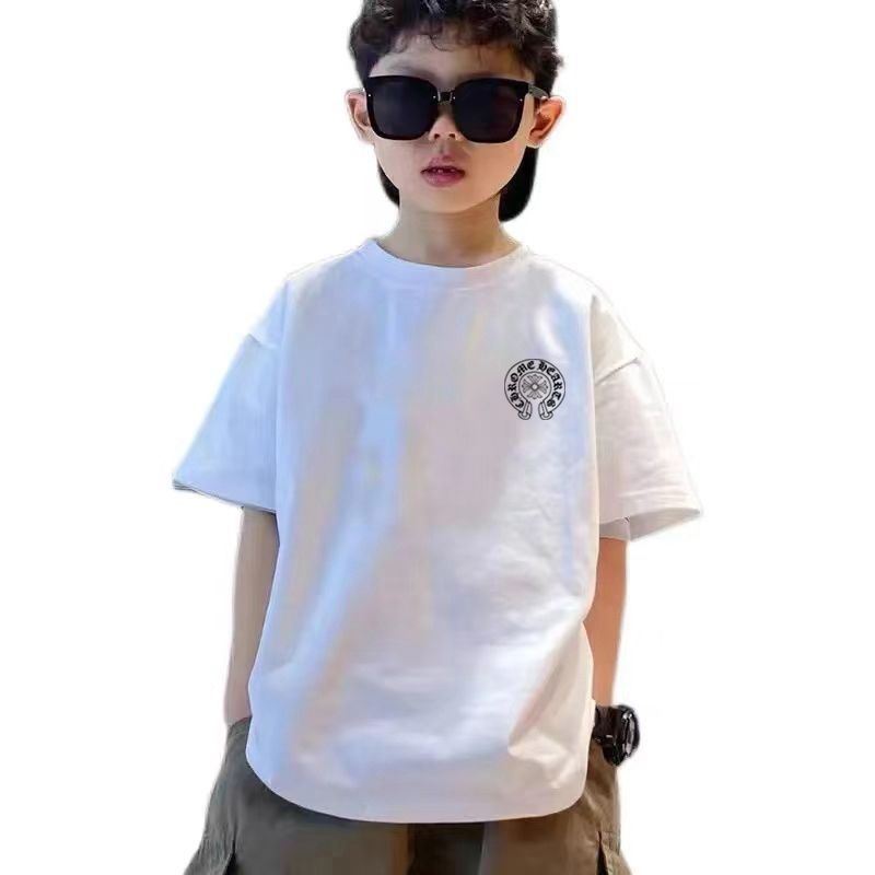 クロムハーツ Chrome Heartsブランド半袖Tシャツ キッズ プリント柄 男の子 女の子 流行り 110-170cm カットソー インナー クルーネック 綿100 ジュニア 男女兼用 韓国 子供服 運動会